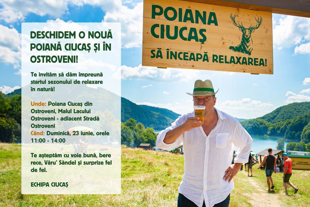 Iar duminică, 23 iunie, între orele 11.00 – 14.00, zona de picnic de pe strada Ostroveni se va transforma în „Poiana Ciucaș”, unde râmnicenii vor putea începe relaxarea cu jocuri interactive, premii surpriză, bere rece, muzică live și voie bună adusă de Văru’ Săndel – ambasadorul Ciucaș. În baza unei colaborări cu Primăria municipiului, Caravana Ciucaș a amenajat pe malul lacului Ostroveni un spațiu cu cinci foișoare cu mese și bănci, cinci grătare din tablă de oțel, o stație de colectare selectivă a deșeurilor și o poartă de acces, astfel că „Poiana Ciucaș” de la Râmnicu Vâlcea se alătură celolalte 23 de astfel de spații amenajate în 19 județe din România.